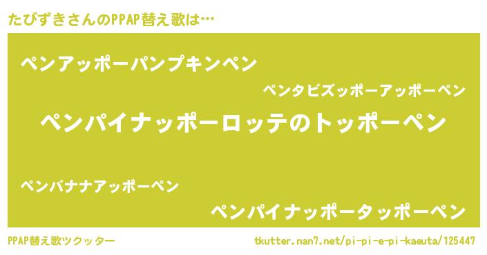 | 男性向けラノベタイトル風あだ名 | 『タビズキスレイヤー』『緋弾のタビズキ』 |