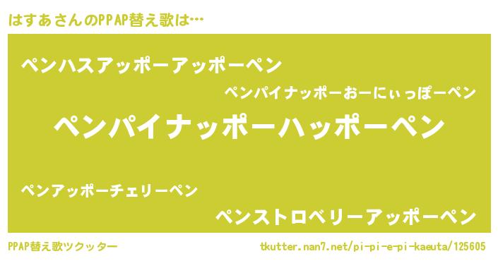 | ピコ太郎風あだ名 | 『ピコハ郎』『ハス史郎』『ハコ二郎』 |
