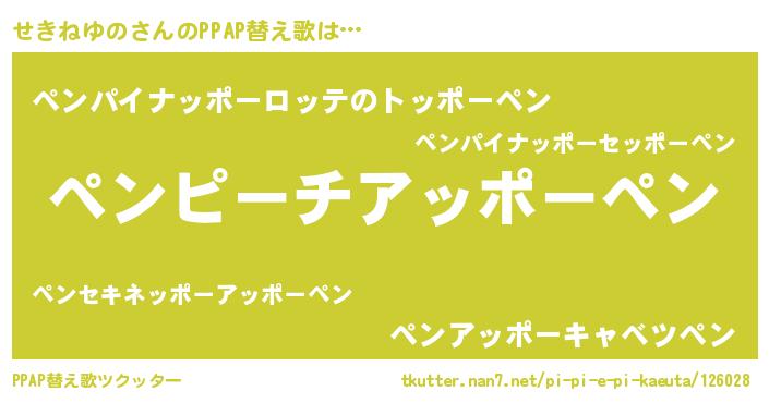 | 意味不明あだ名 | 『ペロリンせきねゆの』『自称せきねゆの』 |