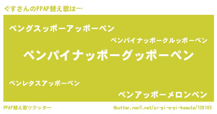 | ピコ太郎風あだ名 | 『ピコグ郎』『グス四郎』『ピグ次郎』 |