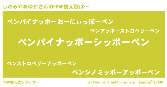 | ヘコむあだ名 | 『しのみやあゆか(笑)』『しのっぺ』 |