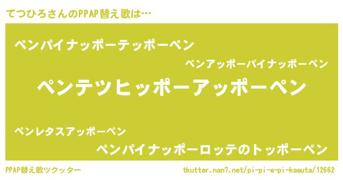 | 意味不明あだ名 | 『めかぶ科てつひろ属』『自称てつひろ』 |