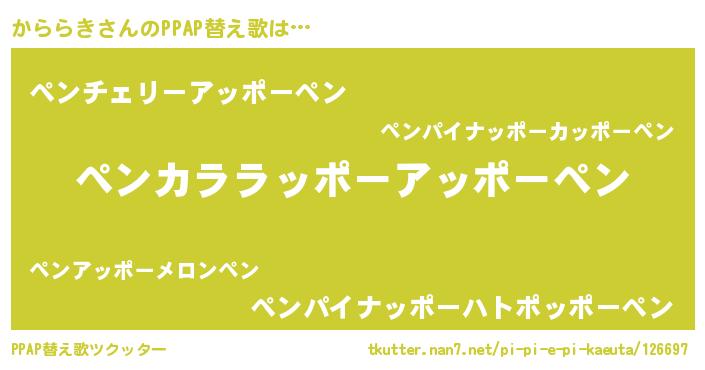 | ピコ太郎風あだ名 | 『カラ二郎』『カコ四郎』『カカ太郎』 |