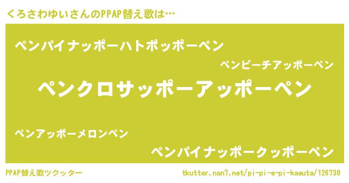 | 欧米人風あだ名 | 『ウサインくろさわゆい』 |