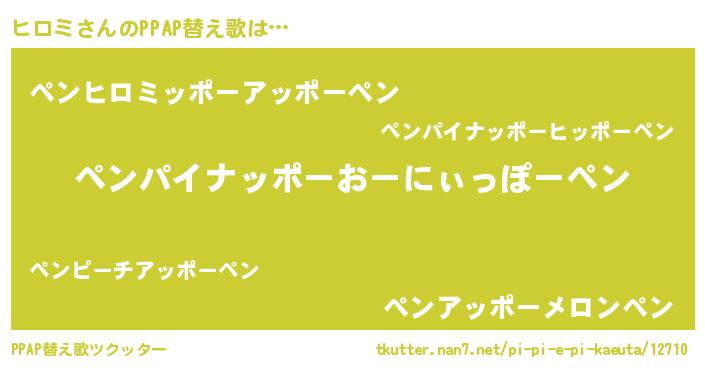 | ピコ太郎風あだ名 | 『ヒヒ太郎』『ヒロ十郎』『ピヒ八郎』 |