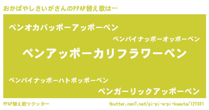 | ピコ太郎風あだ名 | 『ピオ史郎』『オカ二郎』『オコ十郎』 |