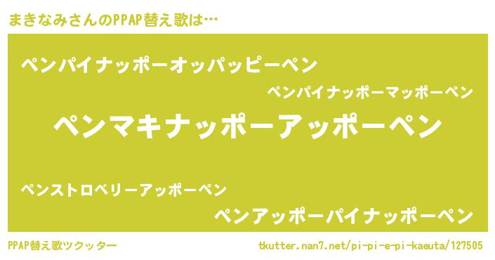 | ピコ太郎風あだ名 | 『マキ五郎』『ママ太郎』『ピマ八郎』 |