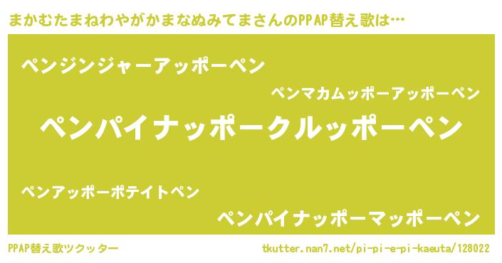 | 欧米人風あだ名 | 『ダニエルまかむたまねわやがかまなぬみてま』 |