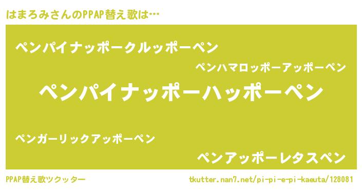 | ピコ太郎風あだ名 | 『ピコハ郎』『ハハ太郎』『ピハ四郎』 |