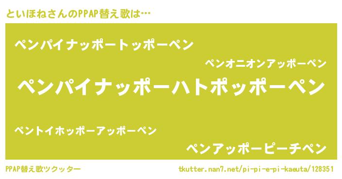 | ピコ太郎風あだ名 | 『トト太郎』『ピコト郎』『ピト次郎』 |