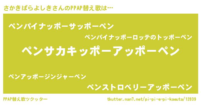 | 料理風あだ名 | 『さかきばらよしきのカルパッチョ風』 |