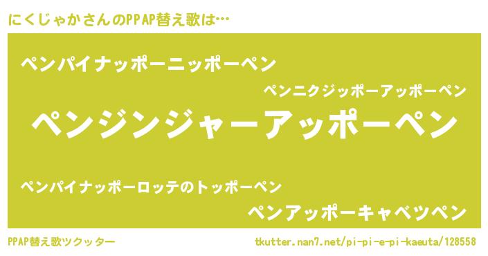 | 男性向けラノベタイトル風あだ名 | 『転生したらにくじゃかだった件』 |