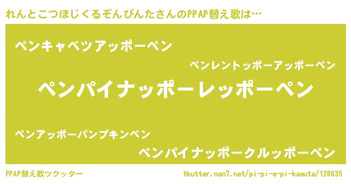 | 胡散臭い通販商品みたいなあだ名 | 『絶対に幸福をもたらす水素水…その名も「れんとこつほじくるぞんびんた」』 |