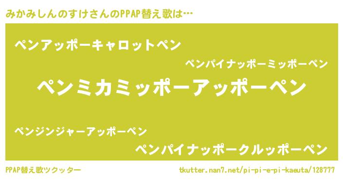 | 男性向けラノベタイトル風あだ名 | 『みかみしんのすけの嫁は女の子じゃないと思った?』 |