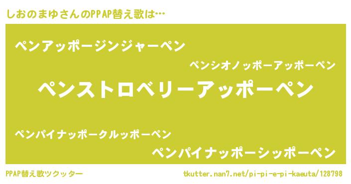 | 欧米人風あだ名 | 『しおのまゆ・ステッグマイヤー』 |