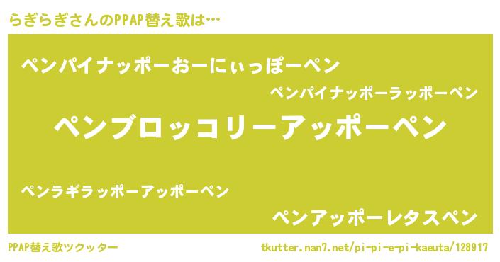 | 2回繰り返すあだ名 | 『らんらん』『らぎらぎ』『ぶつぶつ』 |