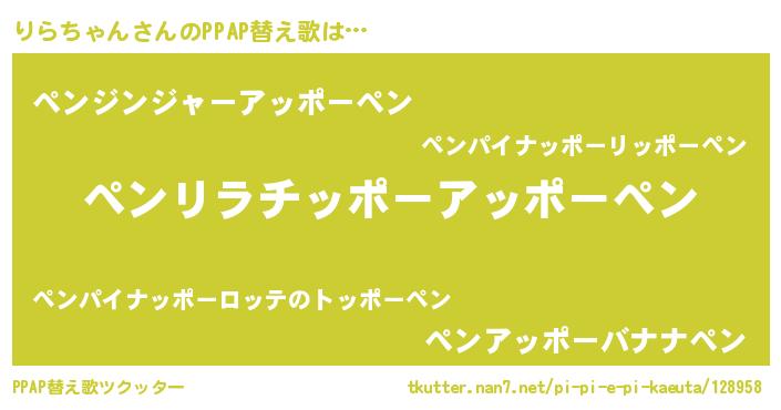 | ピコ太郎風あだ名 | 『リラ八郎』『リコ六郎』『ピリ三郎』 |