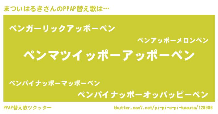 | ピコ太郎風あだ名 | 『マツ史郎』『マコ一郎』『ママ太郎』 |