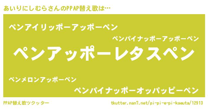 | 意味不明あだ名 | 『自称あいりにしむら』 |