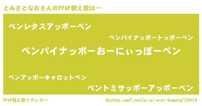 | ピコ太郎風あだ名 | 『トト太郎』『トコ史郎』『トミ八郎』 |