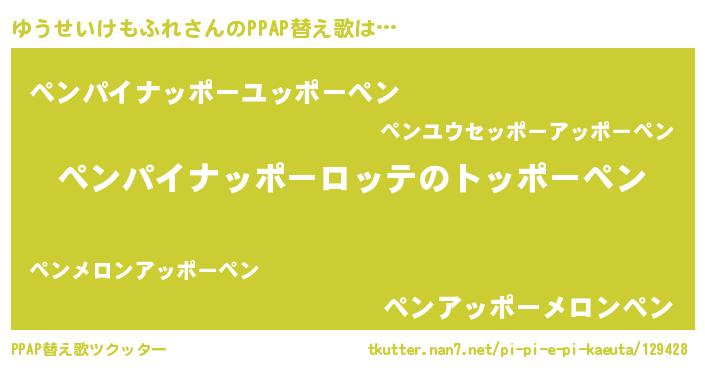 | 欧米人風あだ名 | 『トリンドルゆうせいけもふれ』 |