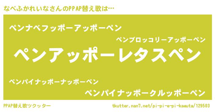 | ピコ太郎風あだ名 | 『ピナ史郎』『ナベ次郎』『ナナ太郎』 |
