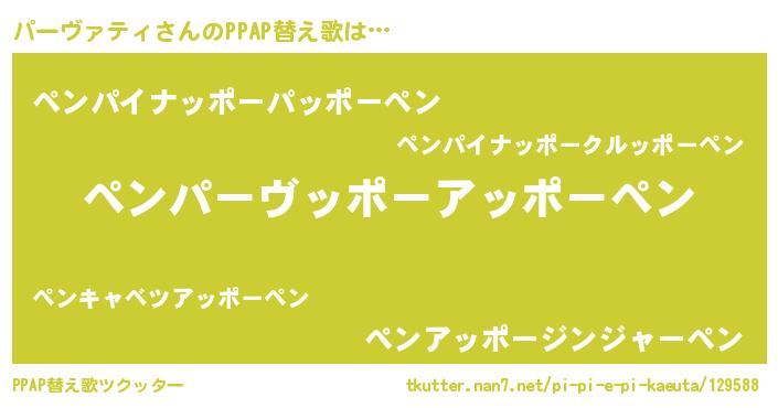 | 欧米人風あだ名 | 『ウサインパーヴァティ』 |
