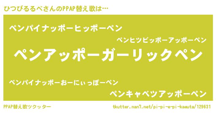 | 欧米人風あだ名 | 『ひつびるるべ・ステッグマイヤー』 |