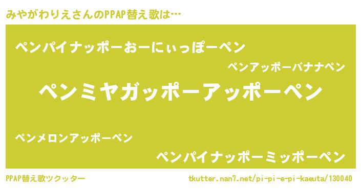 | 肩書あだ名 | 『みやがわりえ少尉』『みやがわりえ総統』 |