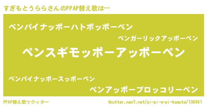 | ピコ太郎風あだ名 | 『スギ史郎』『スス太郎』『ピス十郎』 |