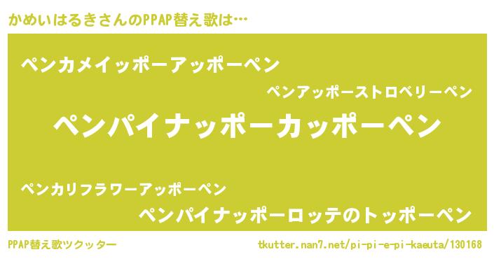 | ヘコむあだ名 | 『かめいはるき(苦笑)』『かめっぺ』 |