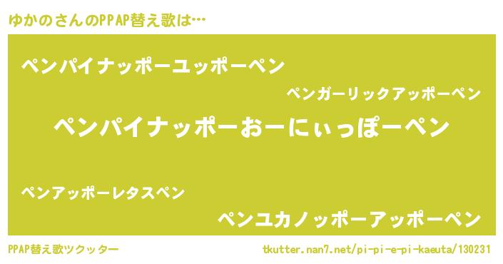 | ピコ太郎風あだ名 | 『ユユ太郎』『ピコユ郎』『ユカ史郎』 |
