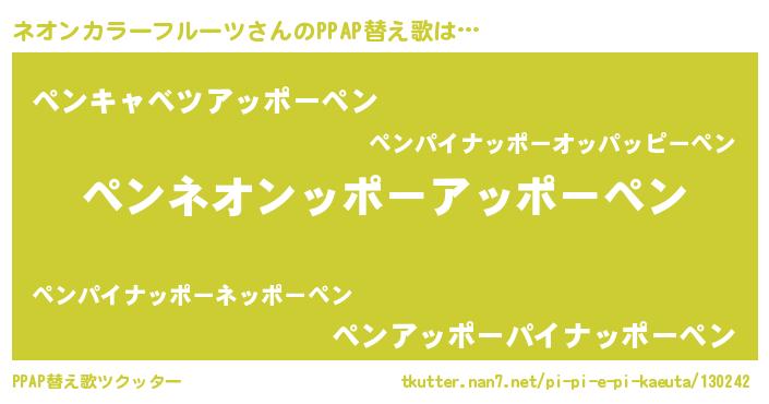 | 欧米人風あだ名 | 『ウサインネオンカラーフルーツ』 |