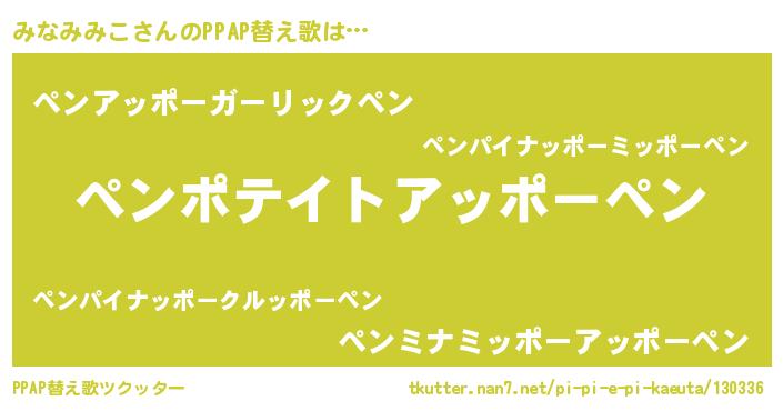 | ピコ太郎風あだ名 | 『ミコ四郎』『ピミ八郎』『ミナ史郎』 |