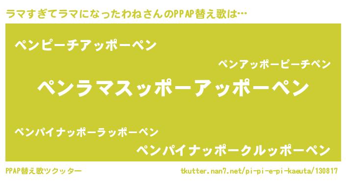 | 料理風あだ名 | 『ラマすぎてラマになったわねのカルパッチョ風』 |