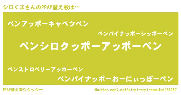| ピコ太郎風あだ名 | 『シロ一郎』『ピシ四郎』『シシ太郎』 |