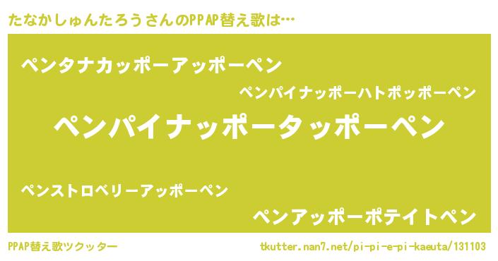| ピコ太郎風あだ名 | 『ピコタ郎』『タナ六郎』『ピタ五郎』 |