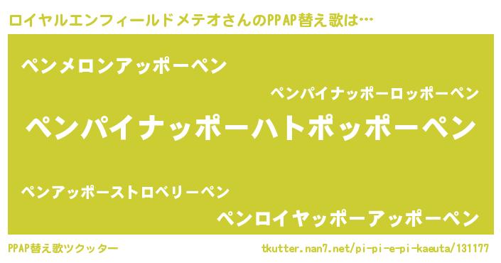 | 意味不明あだ名 | 『眠気覚ましガムロイヤルエンフィールドメテオ味』 |