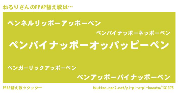 | 欧米人風あだ名 | 『ねるり・ステッグマイヤー』 |