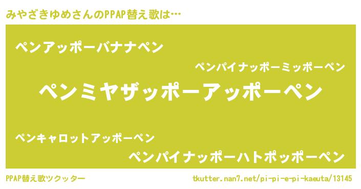 | ピコ太郎風あだ名 | 『ミヤ一郎』『ピミ四郎』『ミミ太郎』 |