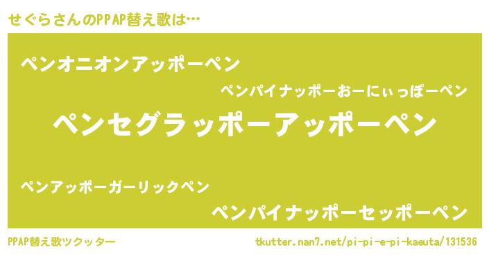 | 意味不明あだ名 | 『とにかく怪しいせぐら』『自称せぐら』 |