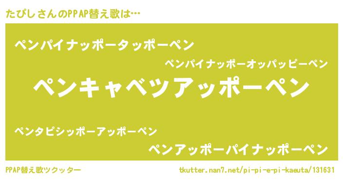 | 欧米人風あだ名 | 『マイケルたぴし』『ダルビッシュたぴし』 |
