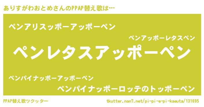 | 意味不明あだ名 | 『ペロリンありすがわおとめ』 |