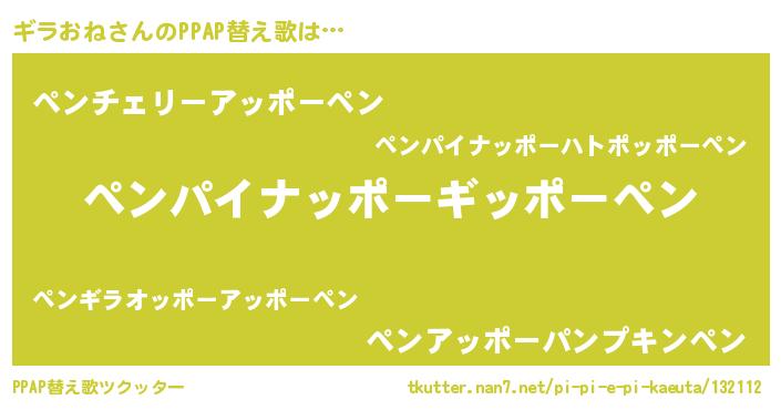 | ピコ太郎風あだ名 | 『ピコギ郎』『ギコ三郎』『ピギ二郎』 |