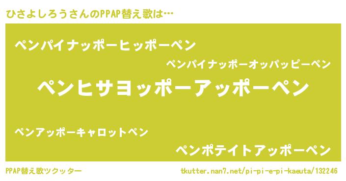 | 胡散臭い通販商品みたいなあだ名 | 『信頼と実績のサプリメント…その名も「ひさよしろう」』 |