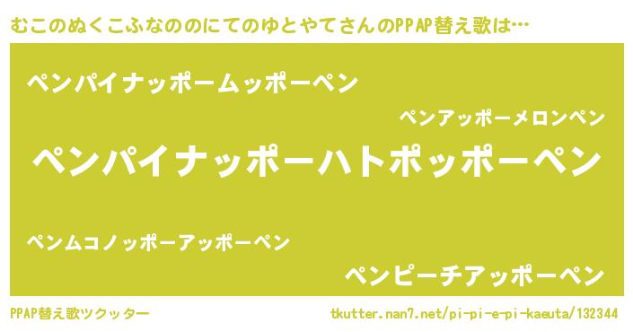 | ヘコむあだ名 | 『むこのぬくこふなののにてのゆとやて(小並感)』 |