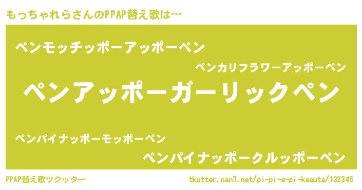 | ピコ太郎風あだ名 | 『ピモ八郎』『モッ六郎』『モモ太郎』 |