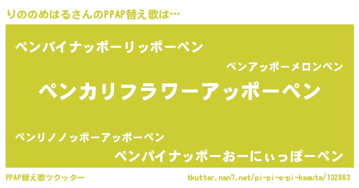 | 欧米人風あだ名 | 『りののめはる・ステッグマイヤー』 |