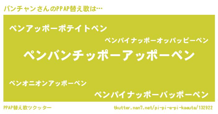 | ピコ太郎風あだ名 | 『バン一郎』『ピバ十郎』『ピコバ郎』 |