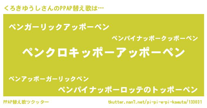 | ピコ太郎風あだ名 | 『クロ八郎』『クコ三郎』『クク太郎』 |